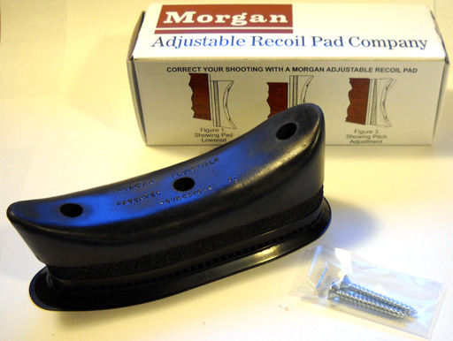 | Morgan Adjustable Recoil Pad features and details. | Morgan Adjustable Recoil Pad typical installation |