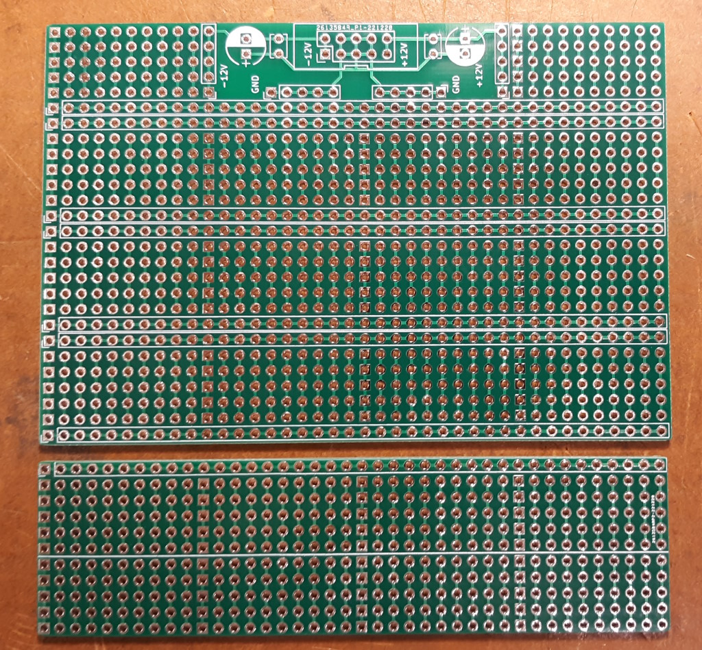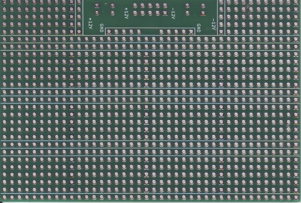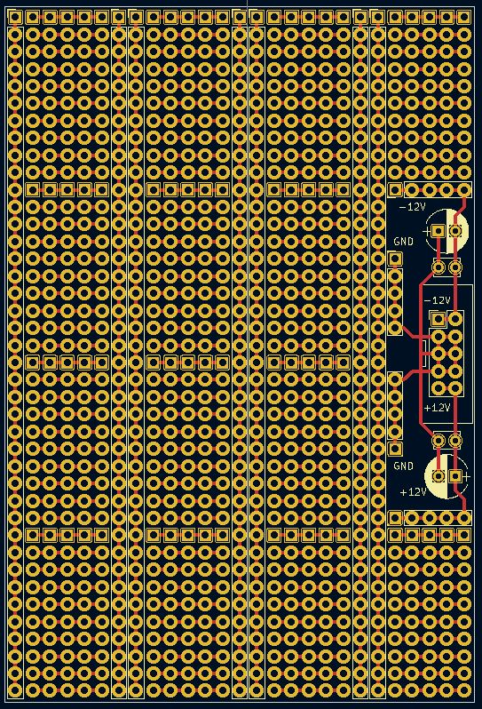 | Kicad rendering of my main Eurorack prototype stripboard. | |