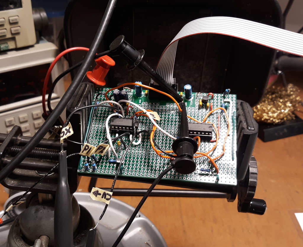 ![]() | Example of side area being used for a voltage regulator (in this case to provide 5v). Simple copper wire to link ground and power (and provide a place for probes to clip). |